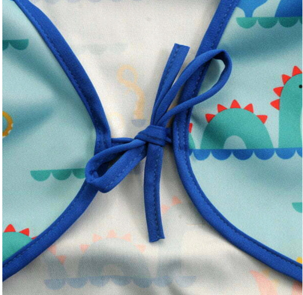 - Covers front, back, and arms and has elasticated cuffs to ensure baby stays clean and dry