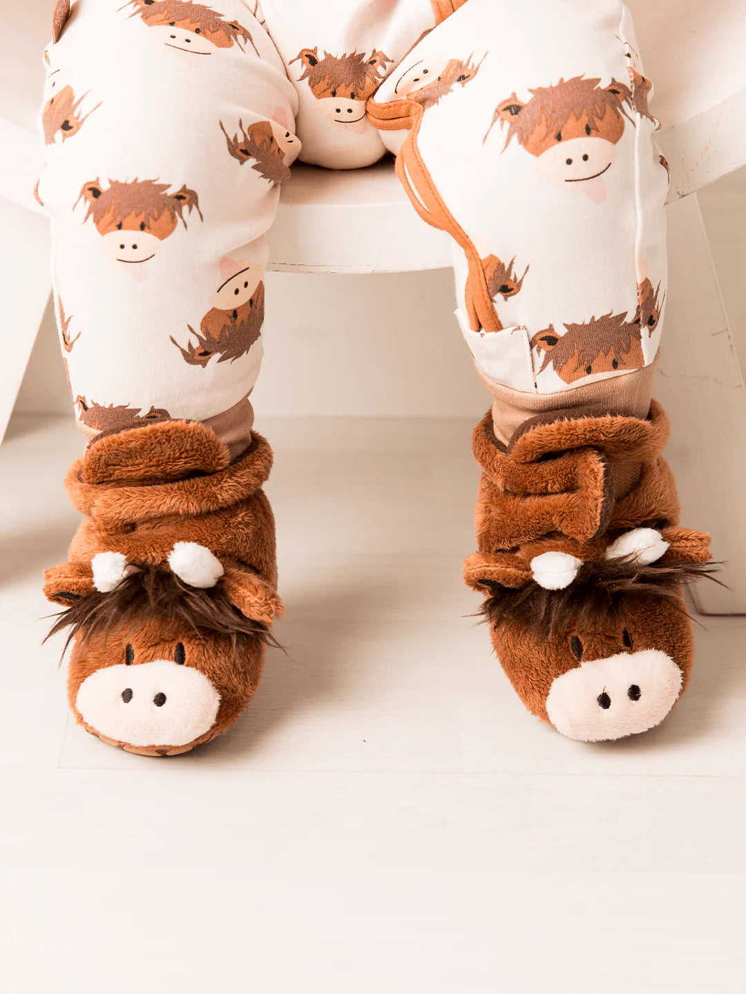 Neutral Hamish Highland Cow Booties - Medium, 6-12 months