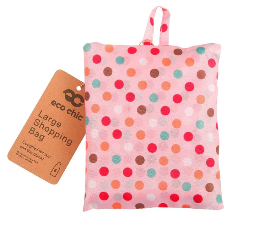 Eco Chic Foldable Reusable Large Shopping Bag Polka Dots