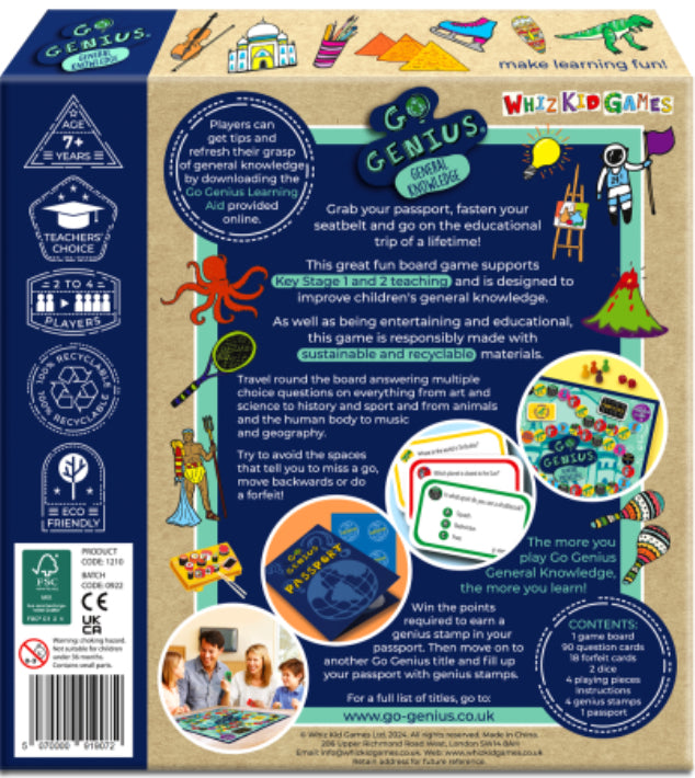Once players have won the points required to earn a genius stamp for Go Genius General Knowledge, they can then move on to another Go Genius title and fill up their passport with genius stamps! As well as being entertaining and educational, Go Genius General Knowledge is responsibly made with sustainable and recyclable materials.