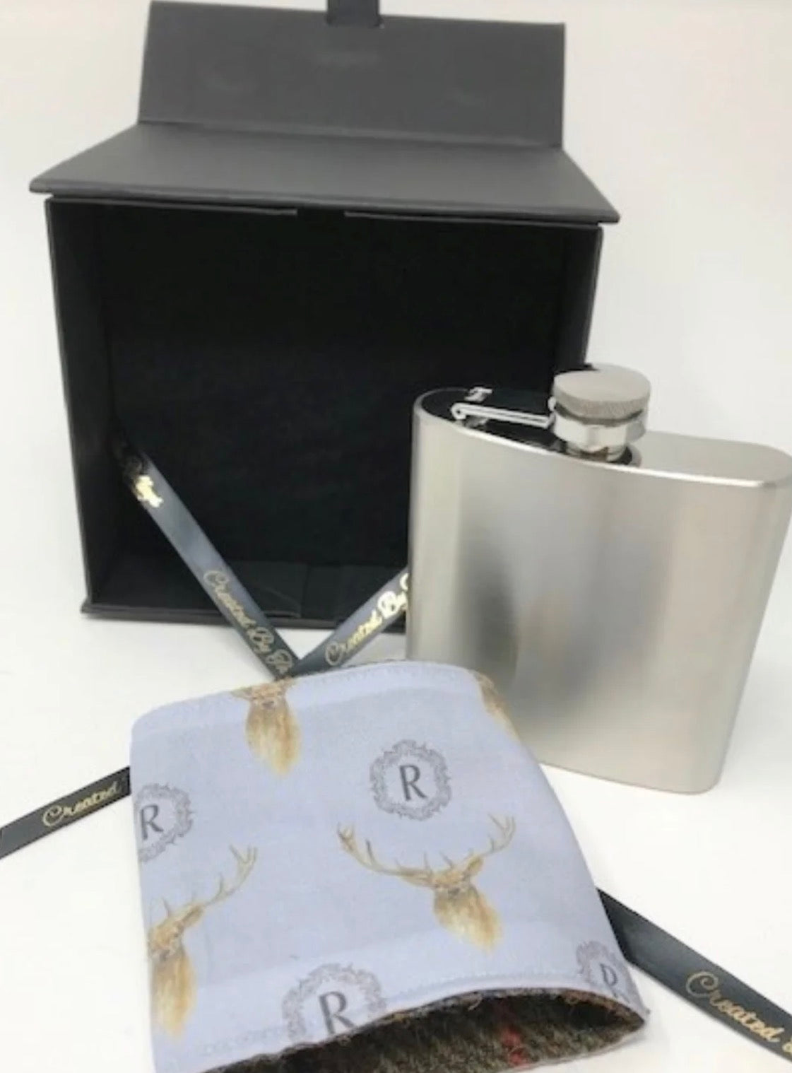 Harris Tweed wrapped 6oz Hip Flask would make a lovely gift for that someone special sold complete with its own beautiful gift box The flask itself is stainless steel and is wrapped in a snug fitting, removable Harris Tweed jacket which has been lined in our own iconic fabric which features water colour paintings from Edinburgh artist The Arty Penguin. The iconic Orb label stitched to the front ensures the authenticity of the cloth The sleeve can be hand-washed making it practical as well as stylish. Why not add the recipients initials to make it that bit extra special.