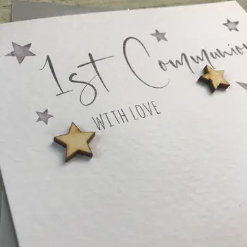 A gorgeous card, hand-decorated with a wooden element, on a textured white card. Blank inside for your message. 16X16cm or 22x22cm