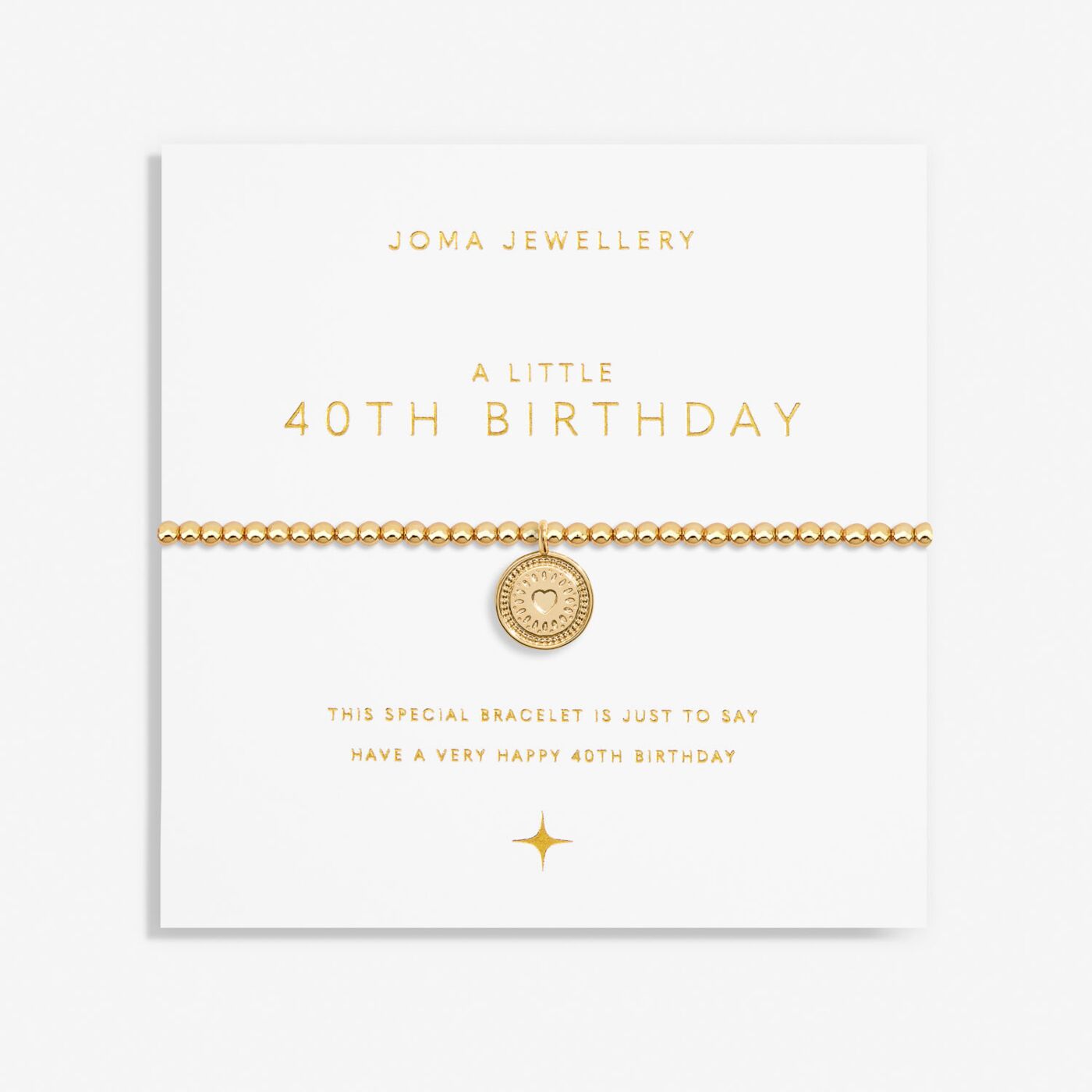 Say hello to one of the new additions to our gorgeous Gold-Plated A Little Collection! Our A Little '40th Birthday' Bracelet in Gold-Plating features a captivating stretch design and a precious Gold-Plated stamped disc charm. Wrapped around one of our stylised cards and framed with a sweet sentiment, this piece is sure to make a standout gift and a wonderful addition to your loved one's Collection.
