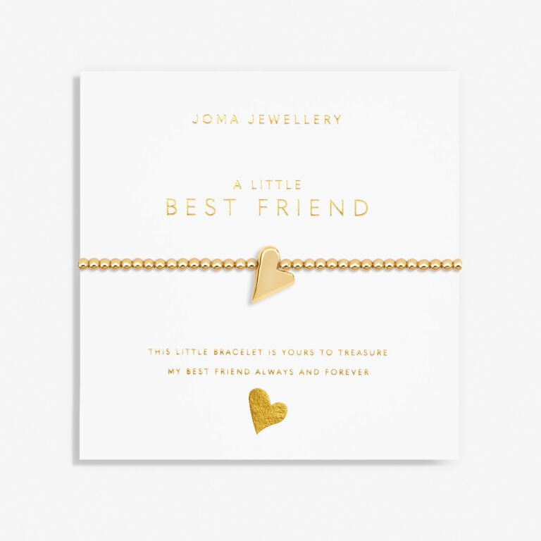 Our A Little 'Best Friend' Bracelet In Gold Plating features a captivating stretch design and a precious gold-plated heart charm. Wrapped around one of our stylised cards and framed with the sweet sentiment.