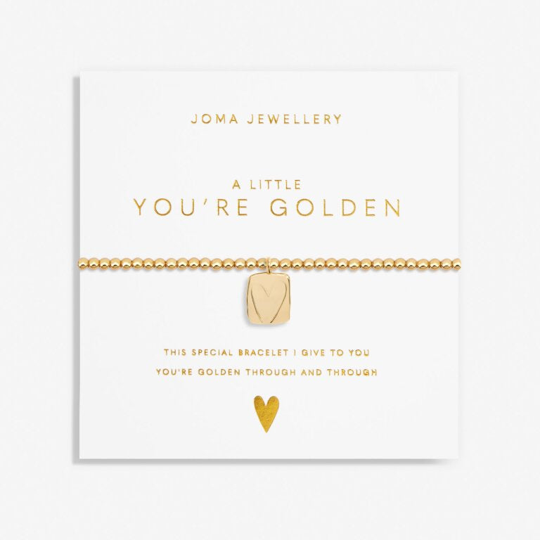 Our A Little 'You're Golden' Bracelet In Gold Plating features a captivating stretch design and a precious gold-plated organic rectangle heart charm. Wrapped around one of our stylised cards and framed with the sweet sentiment.