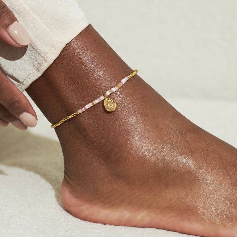 Our Pink Shell Anklet features luxurious gold-plated beads, a sparkling charm and is threaded with gorgeous pink shells.