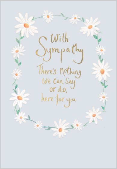"Sympathy - Here for you", a Sympathy card, printed on art board and finished with foil and embossed details.